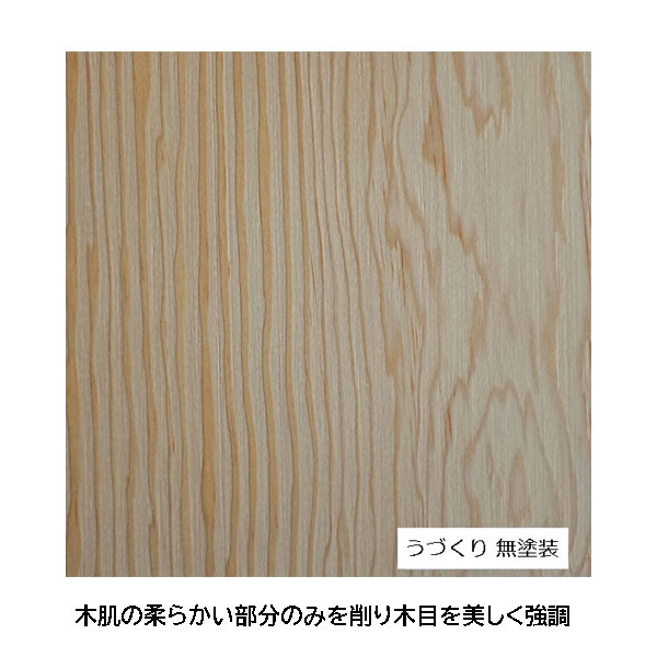 ●表面加工 うづくり/木肌の柔らかい部分のみを削り木目を美しく協調