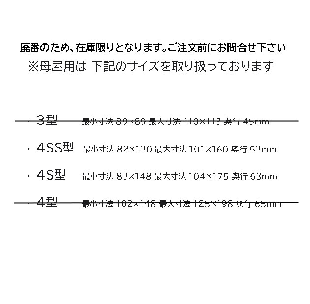 (廃番在庫限り)ご注文前に在庫の確認を致しますのでお問い合わせください。