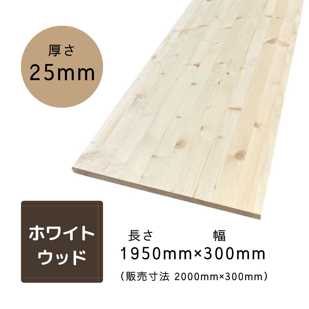 巾ハギ集成材 ホワイトウッド 節有 長さ1950×奥行300×厚25mm カウンター 棚 DIY